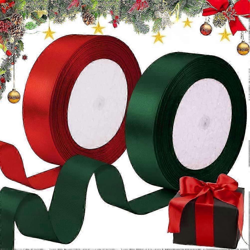 Christmas Ribbon for Gift Wrapping, 2 Rolls Satin Ribbon Red Dark Green for Crafts, Wide 20mm Ribbons for Making Christmas Tree Cake Wreath Wedding De