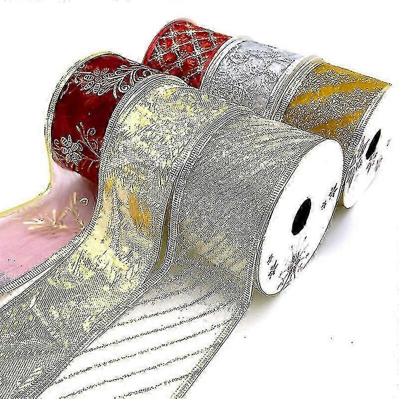 Christmas Ribbon For Gift Wrapping Ribbons Wired Set Of Ribbon Wire Red Green Silver/white Sheer Organza Glitter Gift Wrap Xmas Tree Decoration Holida