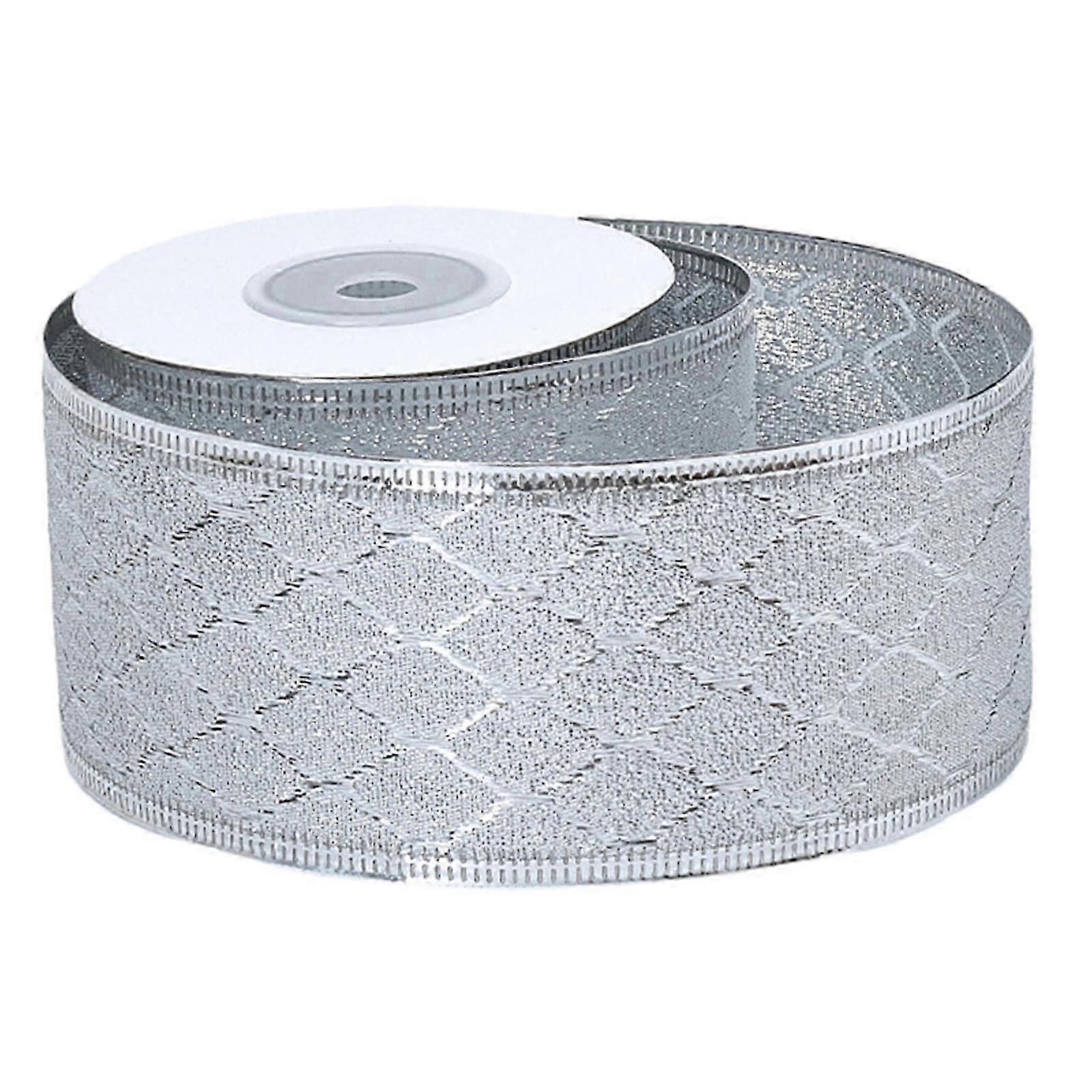 Christmas Ribbon Gift Wrapping Ribbon DIY Durable Wreath Decor Gift Box Greeting Cards Fashion Christmas Tree with Wired Edge Silver Plaid 6cm
