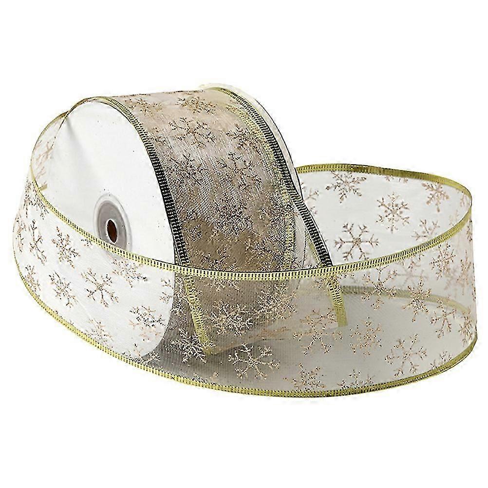 Christmas Ribbon Golden Snowflake Ribbon for Party Decoration 1 Roll