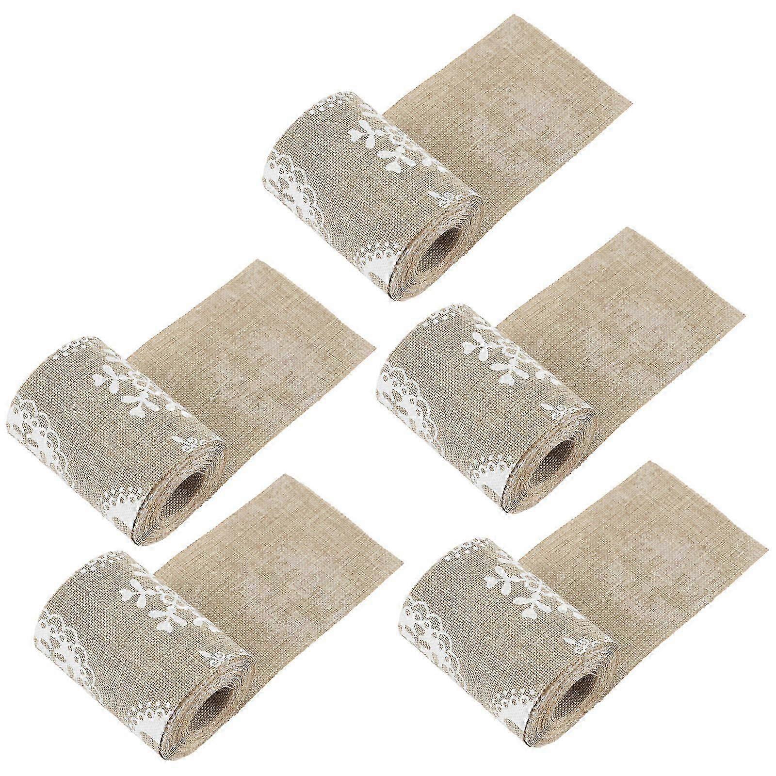 Christmas Ribbon Khaki Ribbon for Decor 5Pcs Linen Printed Christmas DIY Supplies
