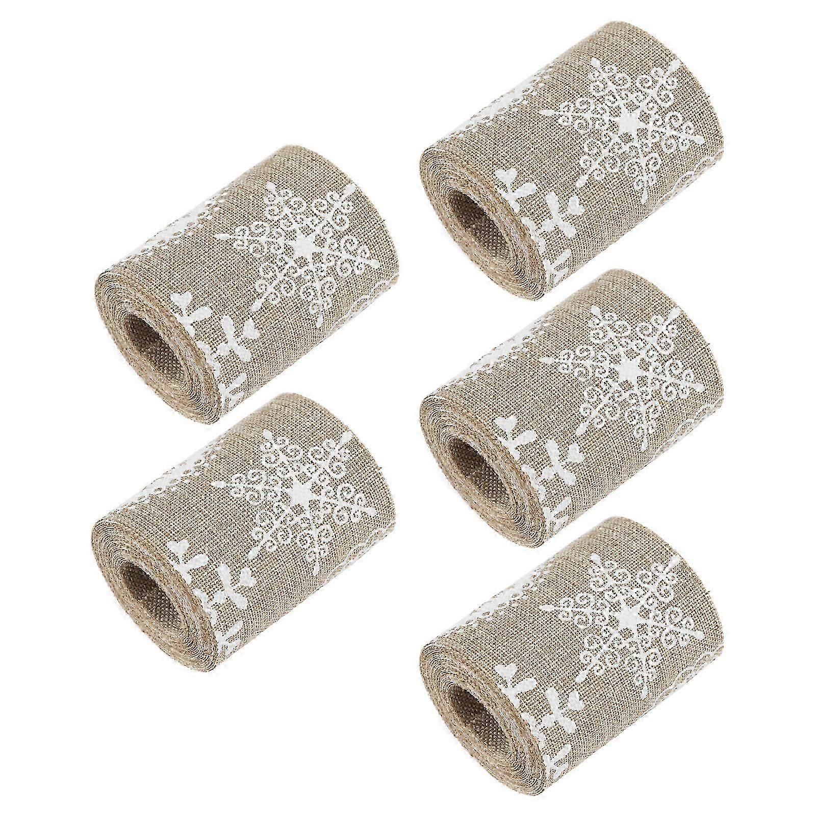 Christmas Ribbon Linen Ribbons for Decor 5Pcs Khaki Printed Xmas Supplies