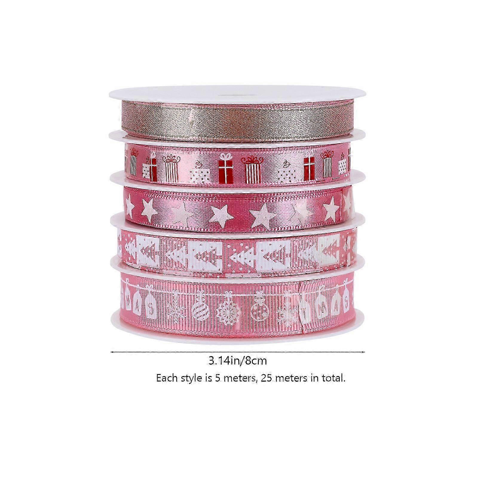 Christmas Ribbon Ornaments Ribbon for Package 5 Rolls Pink Design