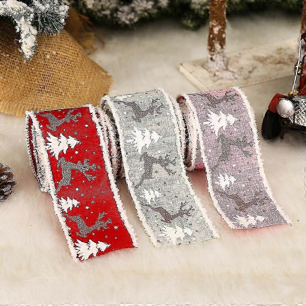Christmas Ribbon Printed Burlap Xmas Trees Snowflake Elk Ribbons For Gift Wrapping Wedding Wreath Bows Decoration