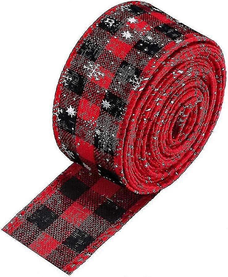 Christmas Ribbon Red Black Buffalo Check Wired Ribbon Holiday Party Ribbon Snowflake Print