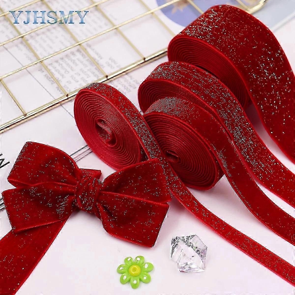 Christmas Ribbon Red Brilliant New Year Velvet Ribbons 10 Yards, Garland, Gifts, Wrapping, Wreaths, Bows