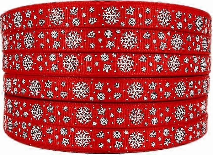 Christmas Ribbon Snowflake Printed 50 Yards Xmas Red 3/8 Inch Grosgrain Ribbon