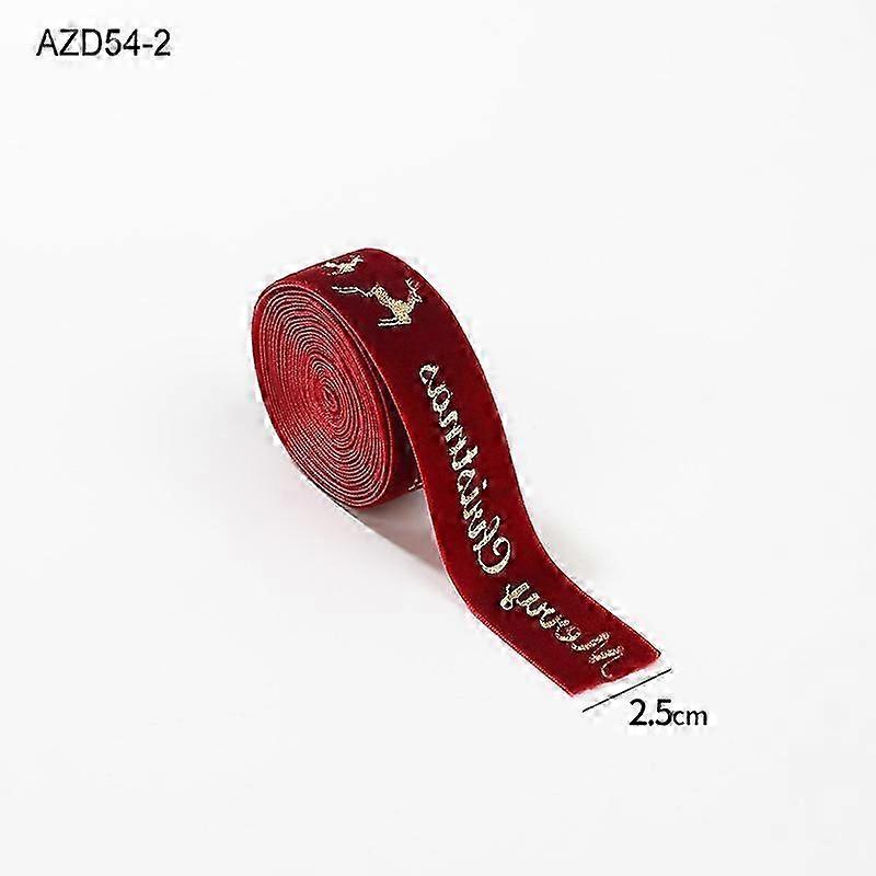 Christmas ribbon velvet gold-stamped bow print ribbon ribbon Christmas tree decoration scene layout decoration ribbon 2.5CM red letter elk ribbon