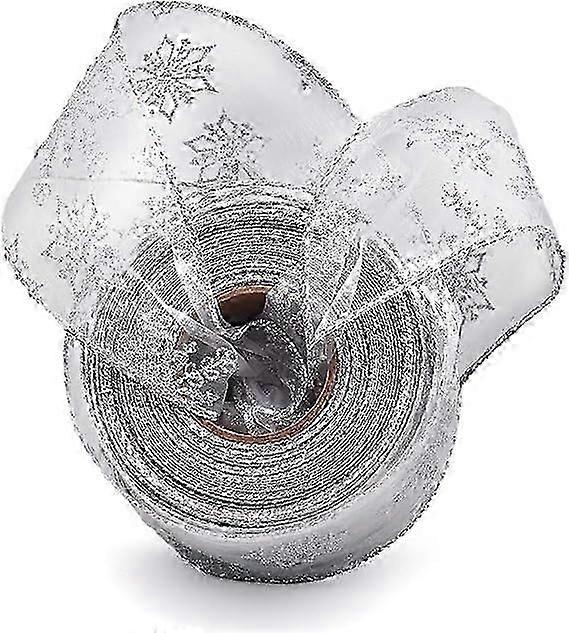 Christmas Ribbon White Silver 6.3CMX 15D Organza Glitter Silver Snowflake Wired Sheer Ribbons for Christmas Tree DIY Wedding Floral Craft Holiday Hom