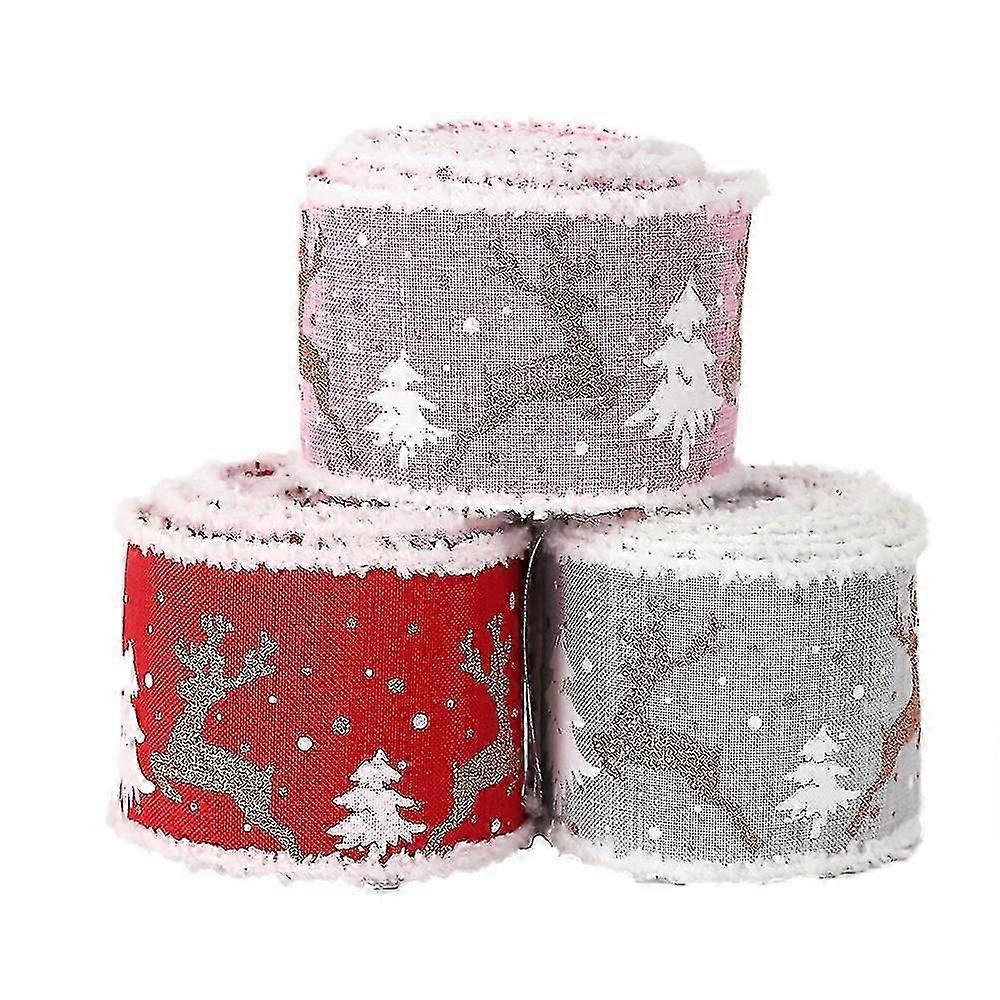 Christmas Ribbon, Wired Ribbon For Gift Wrapping, Wide Ribbons And Trimmings For Christmas Cake Tree Wreaths Cards Decor 3 Rolls
