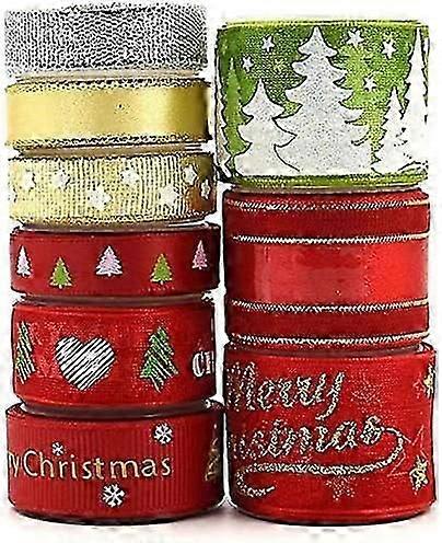 Christmas Ribbons 9 Gift Ribbons Red/Silver/Gold/Green Grosgrain Ribbon Shiny Stripe Gift Cake Wrap Christmas Decor Ribbon Belt Ribbon Hair Band Sewin