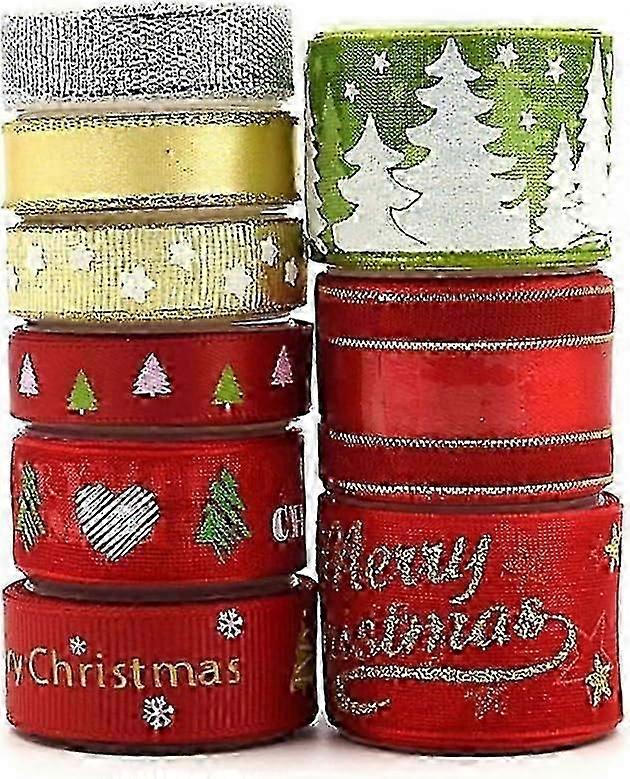 Christmas Ribbons 9 Rolls Red/Silver/Gold/Green Gift Ribbons Grosgrain Ribbon Band Stripe Shiny Gift Cake Wrap Christmas Decor Ribbon