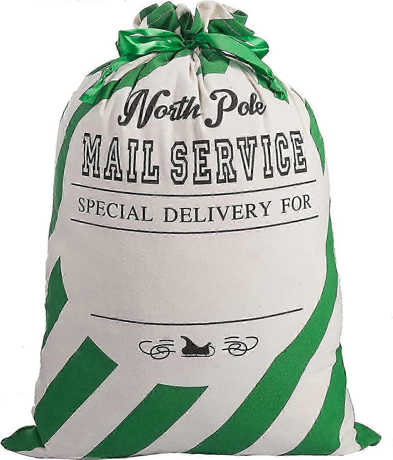 Christmas Santa Bag, Striped Canvas Christmas Gift Bag with Classic Pattern, 19.5"*27.5"