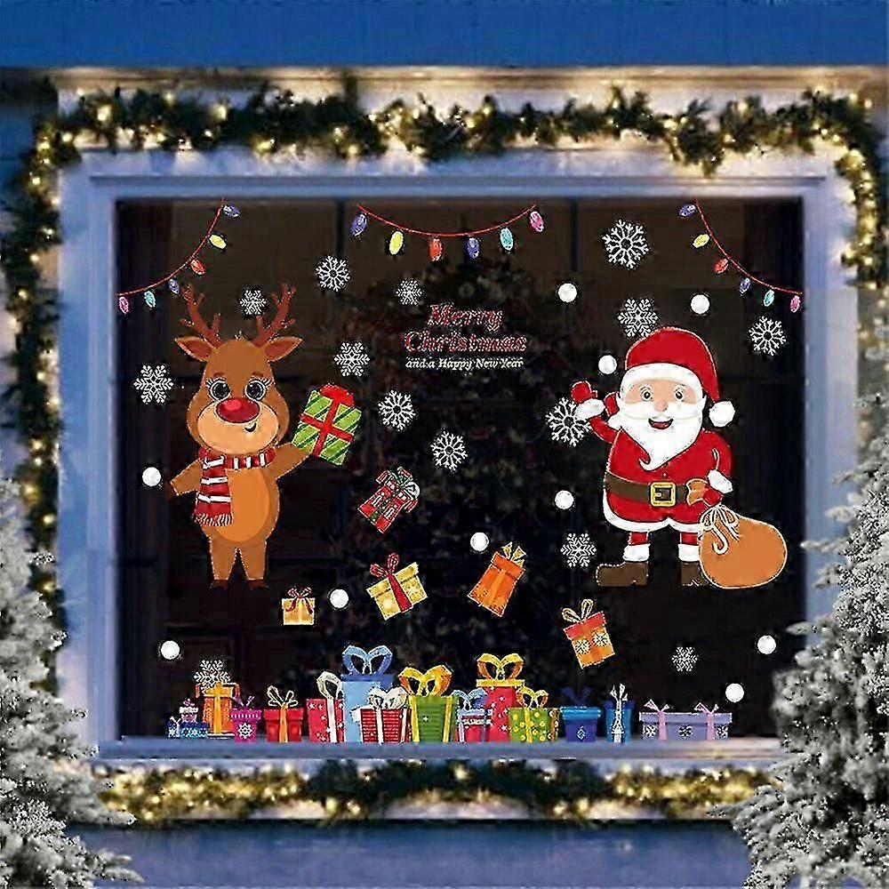 Christmas Santa Elk Window Sticker Removable Xmas Art Wall Decals Home Shop DecorFeature:-- Including Santa Claus, snowflake, reindeer, gifts, other cute patterns.-- Wonderful Christmas decal kits, add festive decor to every corner of your home. -- A cheerful decoration sticker set for a wonderful Christmas and holiday festival.-- Dedicated for winter season and Christmas to make decorating house warm and fun.-- Great for walls, window, shops, childrens bedroom, office, home decorations.-- Electrostatic stickers, no glue. Can be easily removed without trace.-- Made using PVC materials, non-adhesive and reusable. -- Adds a nice Christmas festival atmosphere to your living area.-- Celebrates this joyful festival, gives a feel and vibe of Christmas.-- DIY art decorative pieces, easily decor your home and add festival atmosphere.Specifications:Theme: ChristmasStyle: ModernTheme: ChristmasType: Christmas Window Stickers/ Wall DecalSuitable For: Door, window, wall, shopFeatures: Removable, reusable,no glueMaterials: PVCPattern: Reindeer, Santa Claus, Snowflake, Gift, and morePackage Included: 1Set Cute Christmas Window StickersNote:Before use, please keep your window clean, and wipe the position with wet cloth.Due to the different monitor and lighting effect, the actual color of the item may be slightly different from the color shown on the pictures.Please allow 1-3cm error due to manual measurement. (1 inch = 2.54 cm)Thanks for your support :)