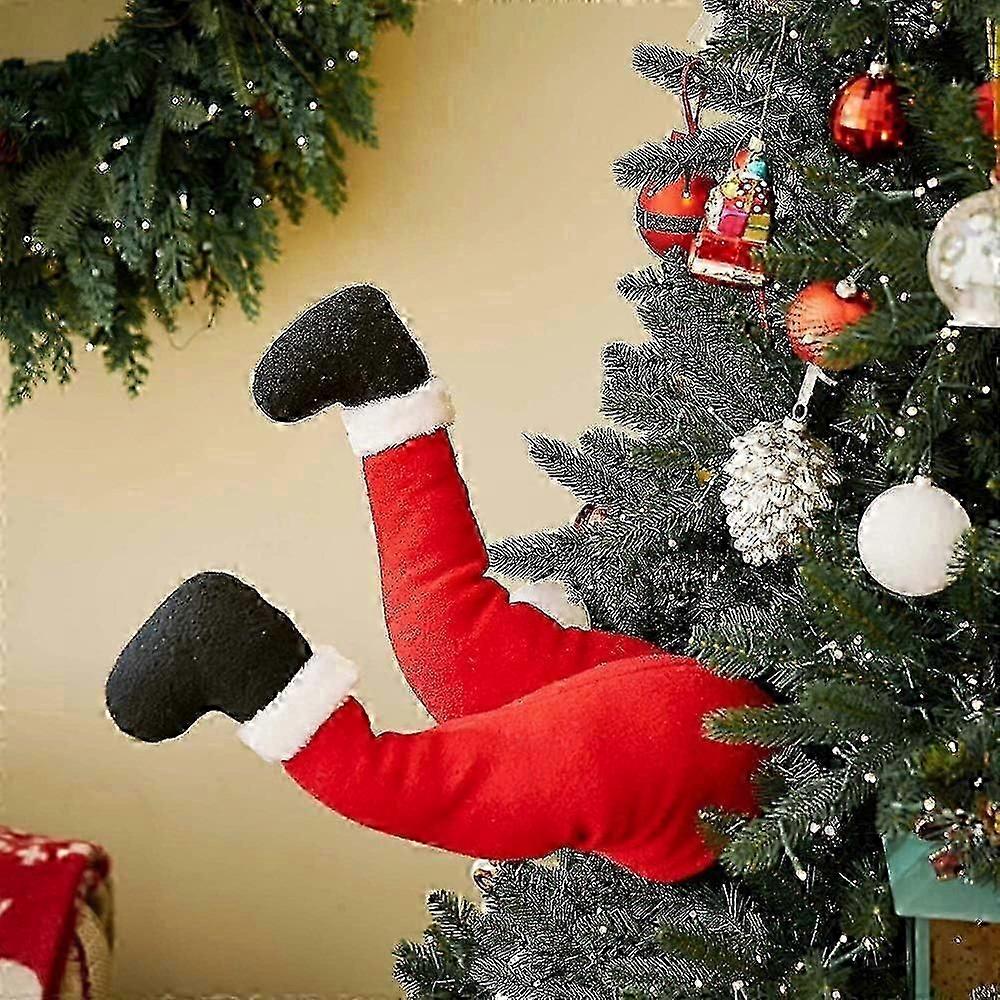 Durable material, made of high-quality flannel, soft, comfortable, durable, reusable, and can shape the legs according to your needs.$The size of length 38*width 21cm*thickness 16cm is suitable for Christmas trees of any size. The interesting patterns can be perfectly matched with other Christmas decorations in your home, adding more festive atmosphere.$Funny creative design, his long hairy legs can pose, so you can create your own Christmas scene on the Christmas tree! The Christmas thief was cleverly disguised as Santa Claus himself.$Perfect Christmas decoration, suitable for Christmas trees, sack garlands, cars, restaurants, etc.; make your home full of festive atmosphere, perfect integration of Christmas, holiday or home decoration.$Christmas decoration artificial legs can be inserted upside down on the Christmas tree, can also be hung on the door, or placed in the courtyard for decoration.