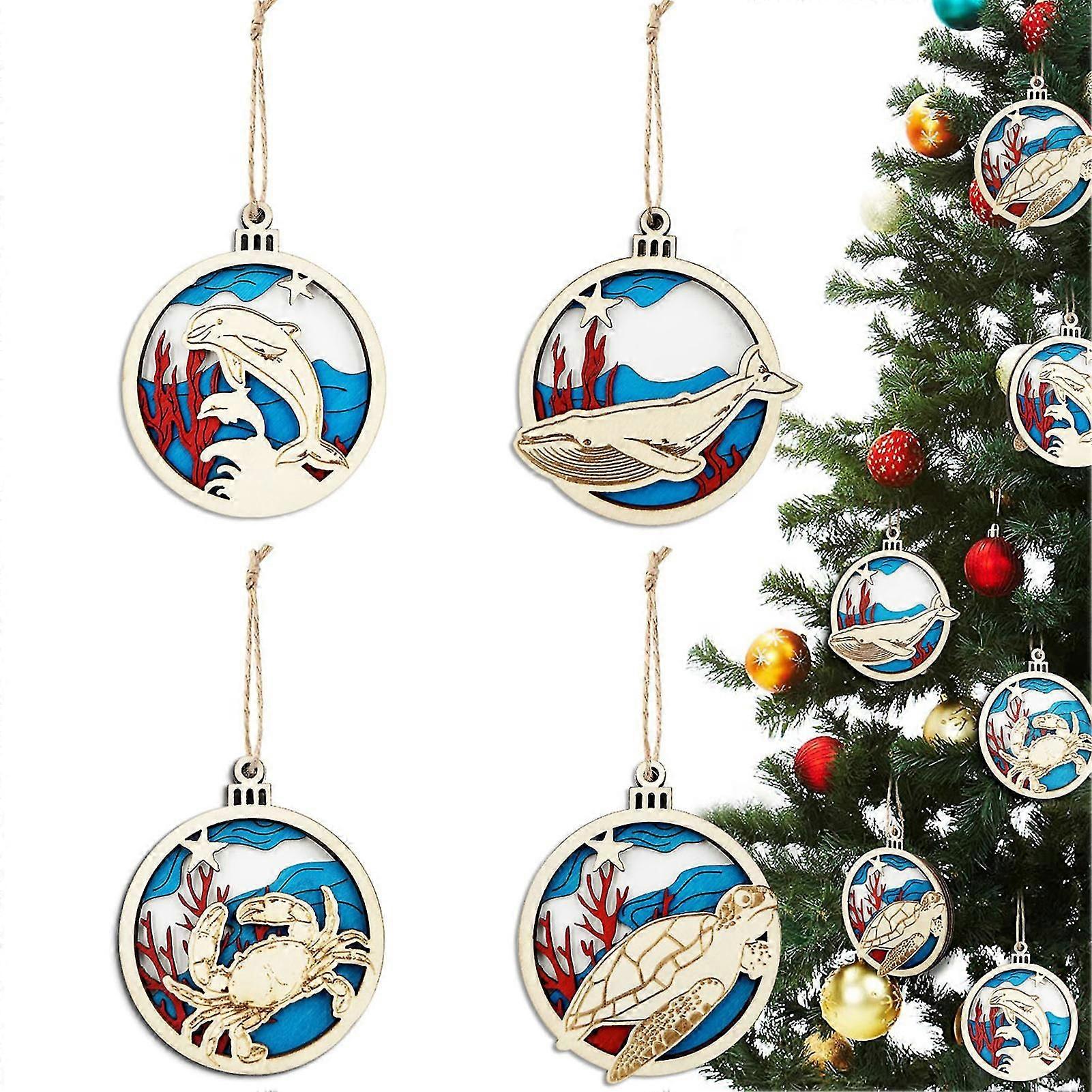 Christmas Sea Animal Hanging Decoration Crab Turtle Wooden Xmas Tree Round Ornament Pendant Gift
