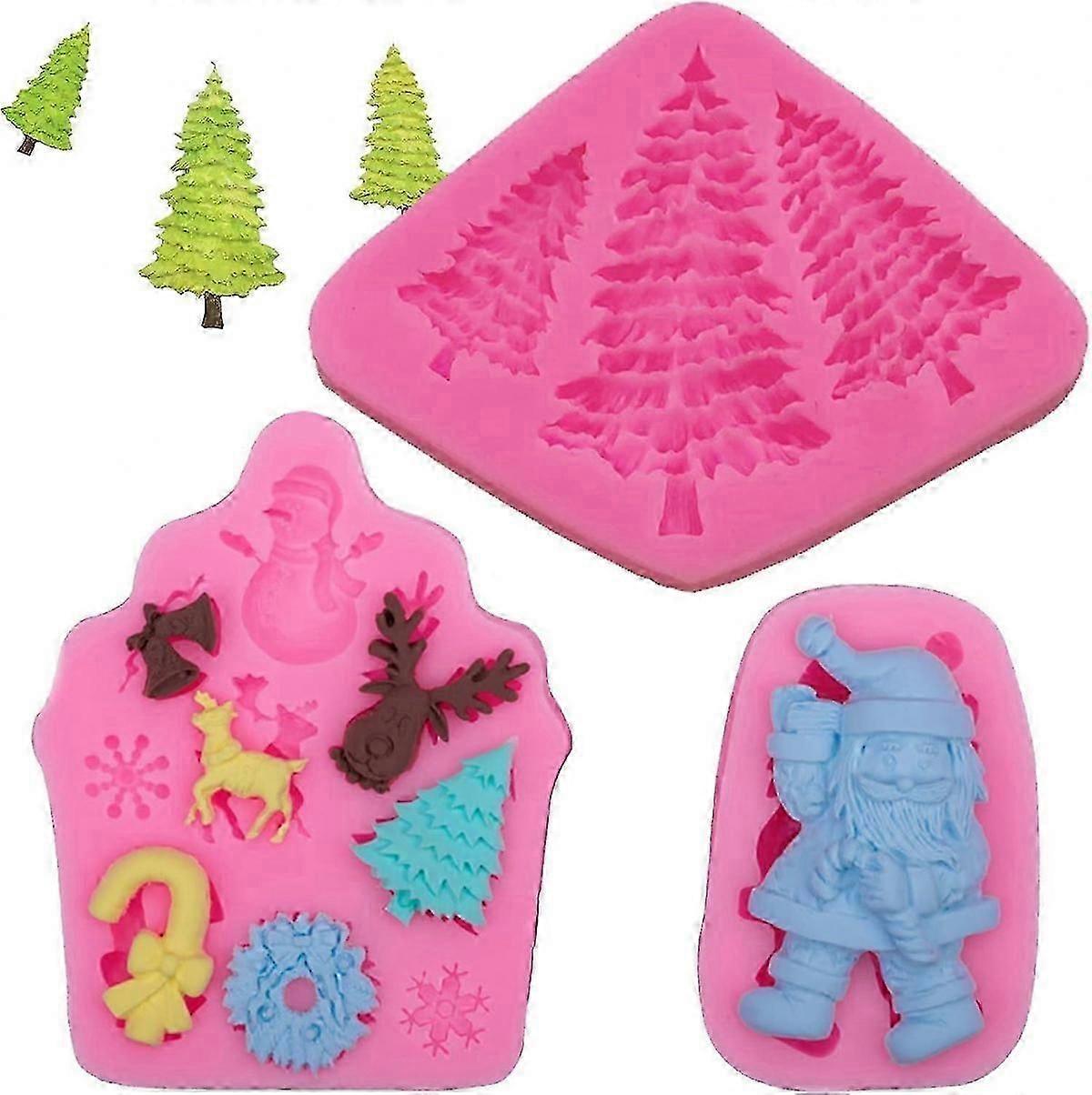 Christmas Silicone Candy Mold 3 Pieces Christmas Fondant Silicone Molds Set of 3 Christmas Chocolate Molds for Christmas Tree,Santa,Reindeer,Christmas