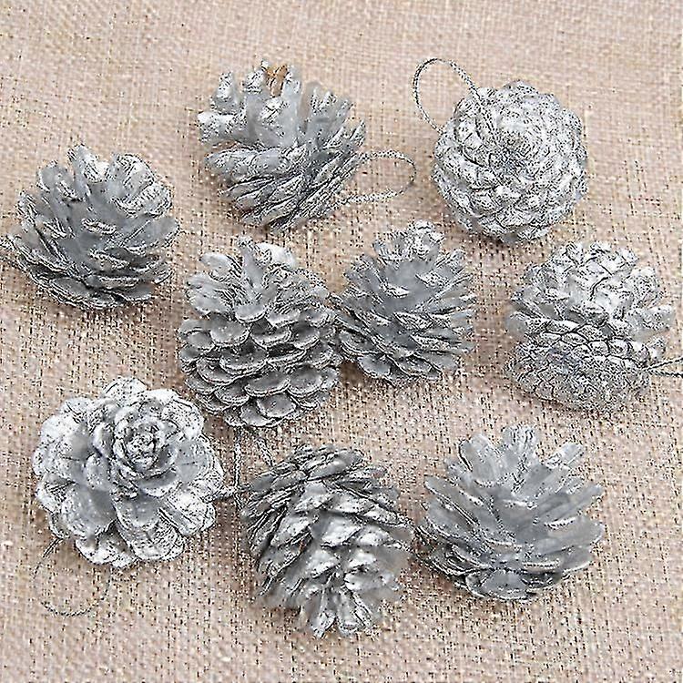 Christmas Silver Pine Cones Baubles Xmas Tree Decorations Ornament for 9X
