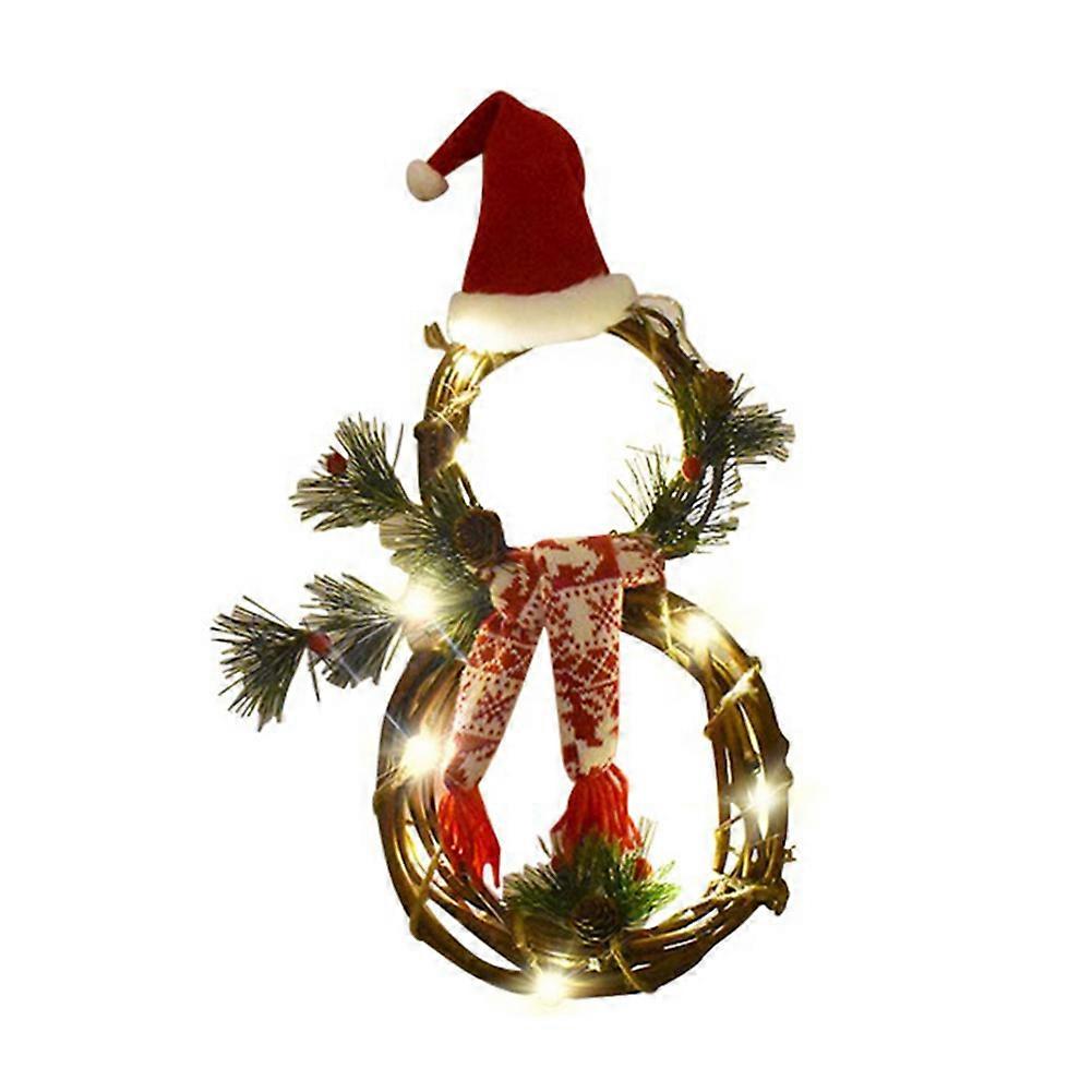 Christmas Snowman Wreath with LED Light Gifts Christmas Party Wedding Romantic Atmosphere Hanging Ornaments Decor