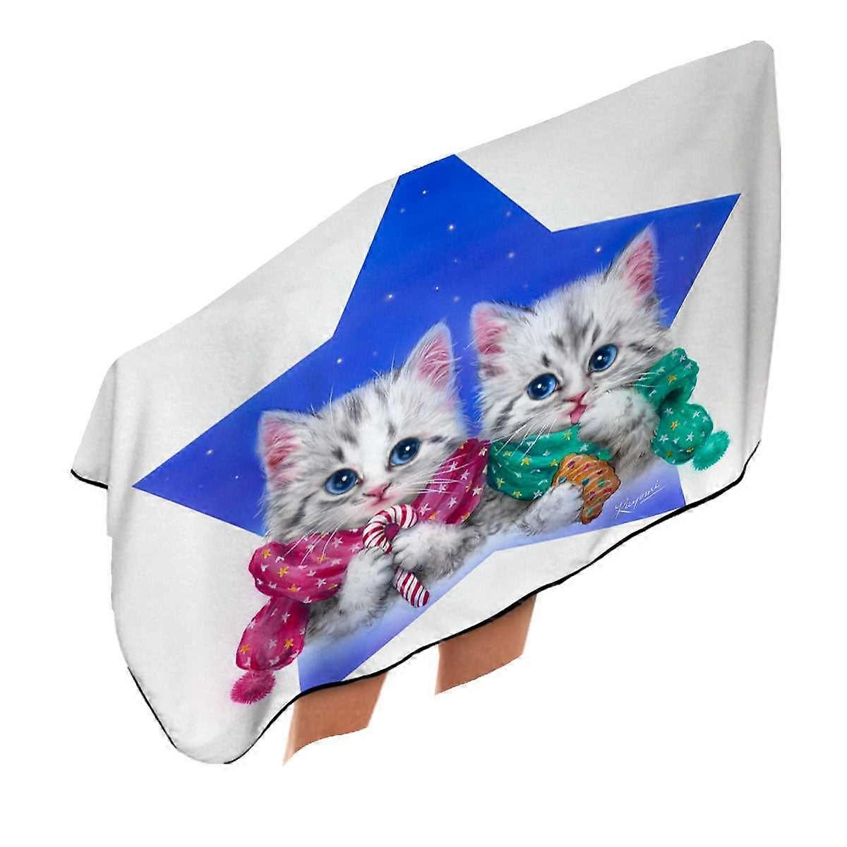 Christmas Star with Two Cute Grey Kittens Microfiber Beach Towel