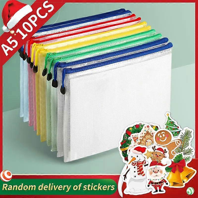 Christmas Stickers A5 Mesh Zipper Storage Bag, Waterproof & Rip-proof Folder