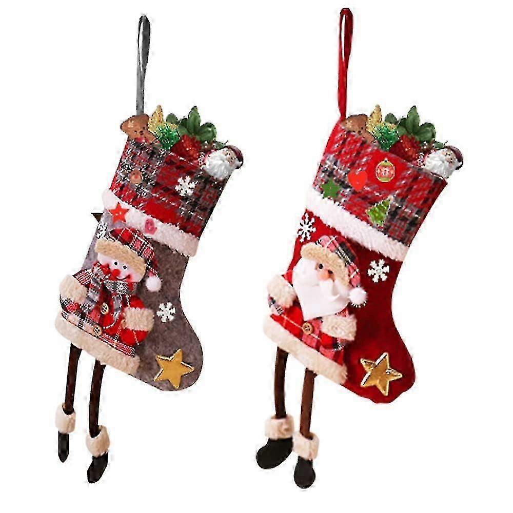 Christmas Stocking, 2pcs Christmas Socks Candy Gift Bag With 50pcs Diy Wooden Christmas Buttons compatible Family Party Christmas Decoration
