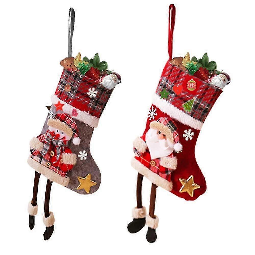 Christmas Stocking, 2pcs Christmas Socks Candy Gift Bag with 50pcs DIY Wooden Christmas Buttons for Family Party Christmas Decoration