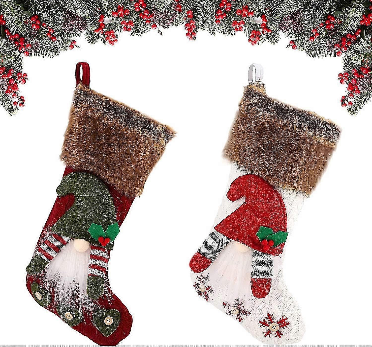 Christmas Stocking 2Pcs Christmas Stocking Christmas Stocking Hanging Christmas Candy Gift Bag Classic Santa Claus-2 PCS