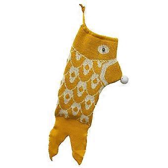 Christmas Stocking Fish Shaped Mermaid Knitted Drawstring Xmas Socks Tree Decor A