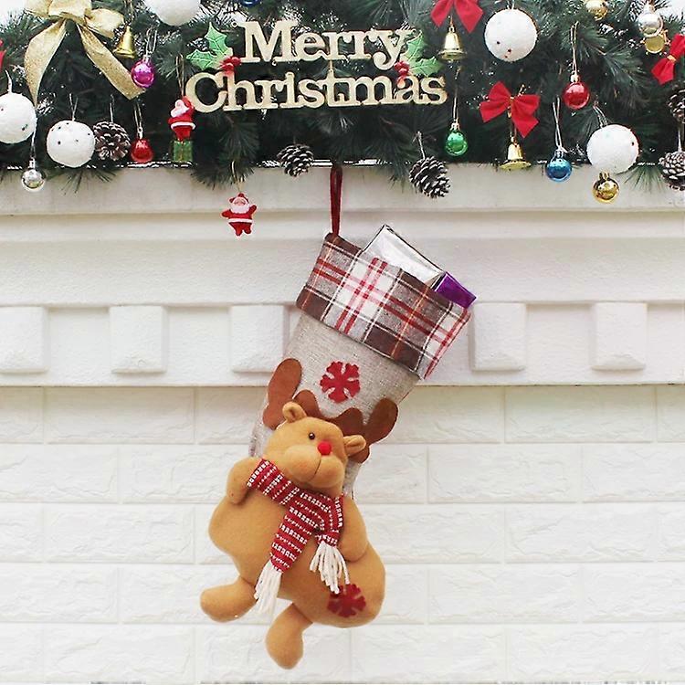 Christmas Stocking Gift Bag Pendant-Lattice Cloth Decoration by