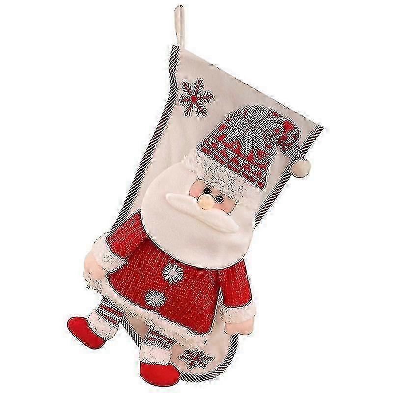 Christmas Stocking Plush Christmas Hanging Stocking Santa Snowman Holder Christmas Tree Hanging Socks For Christmas Party1pcs-red