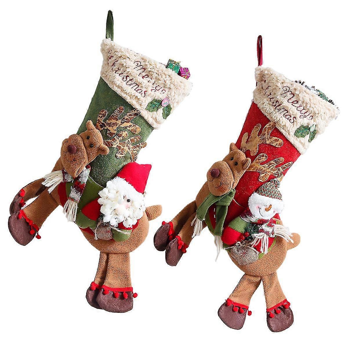 Christmas stockings are one of the must-have Christmas decorations Are your Christmas stockings ready? Use these Christmas stockings that we have prepared for you to give your child an unforgettable Christmas present make Extra large size: This Christmas stocking set with large capacity is very suitable for all kinds of gifts, such as snacks, candies, gift cards, chocolates, toys, etc. It is a great decoration for Christmas. Specification: Material: linen cloth, felt cloth Coloras shown Size: length 42cm , width 28cm, upper opening is 24cm Package Contents: 1*Old man riding a deer 1* Snowman rides deer