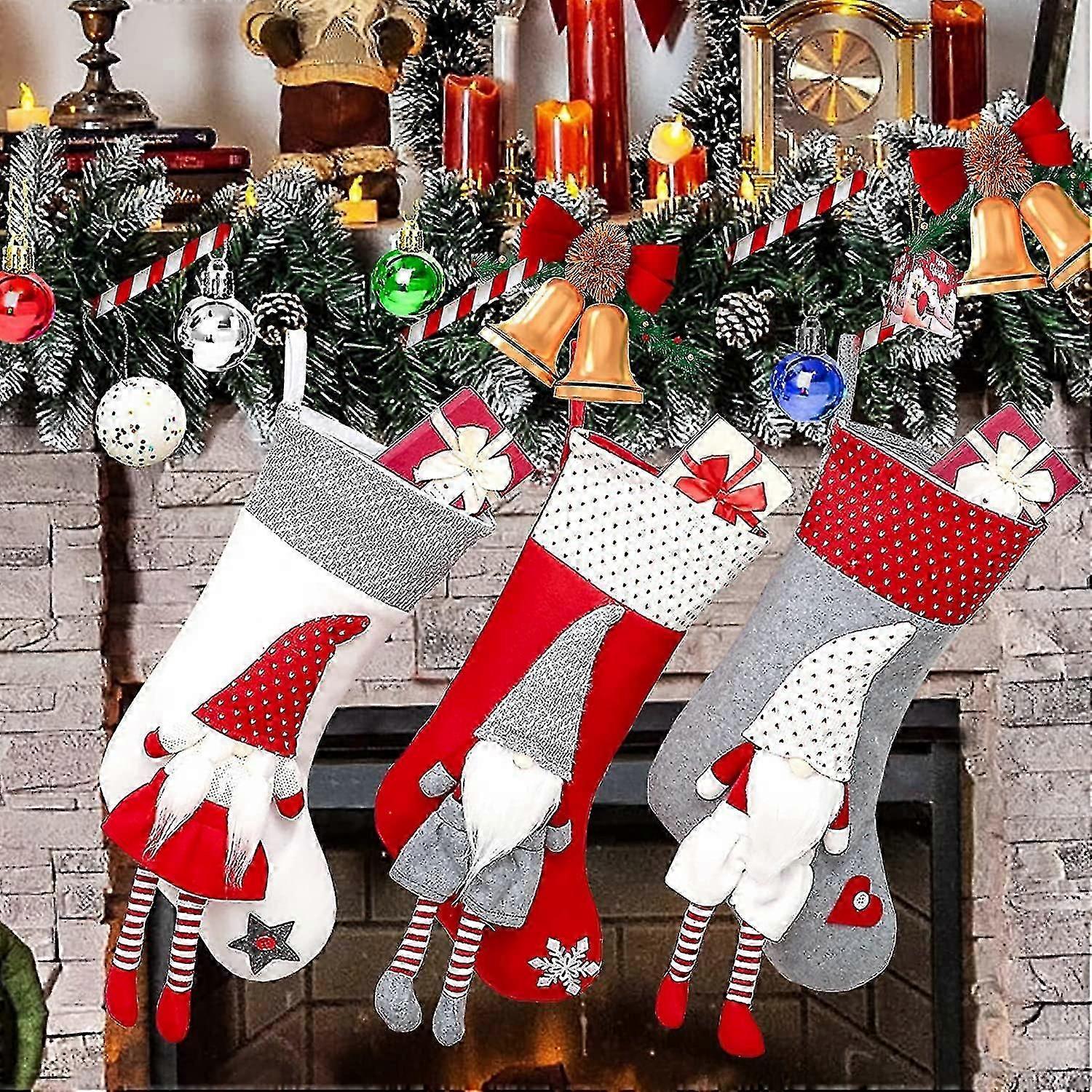 Christmas stockings, Christmas decorations, a set of 3 large classic Christmas stockings for hanging