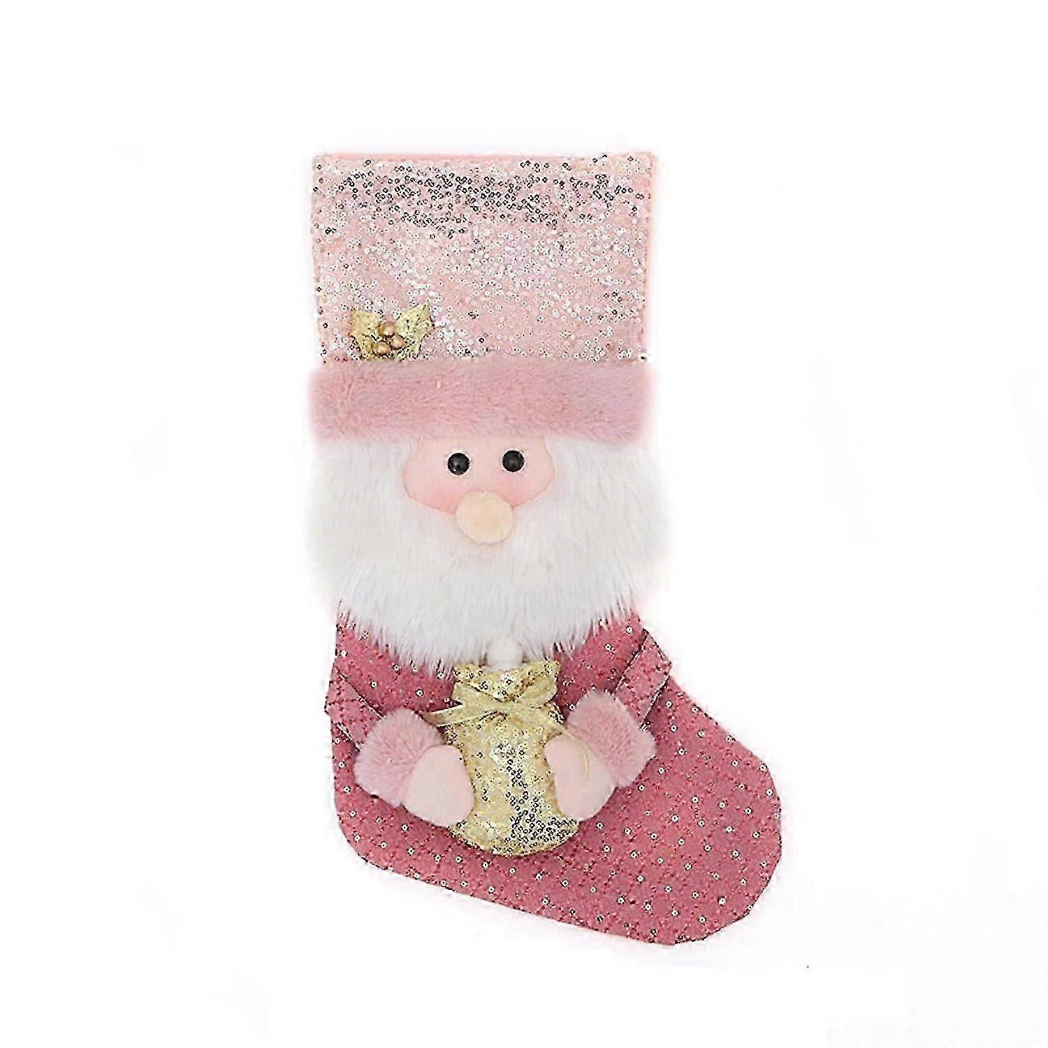 Christmas Stockings Decorations, Sparkle Pink Sequin Christmas Socks, Christmas Ornament Santa Snowman Stockings, Spread Joy this Christma (Santa)