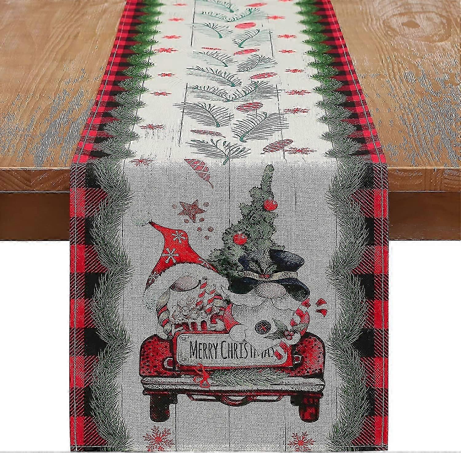 Christmas Table Runner, Buffalo Plaid Christmas Decorations Seasonal Winter Gnomes Xmas Runn
