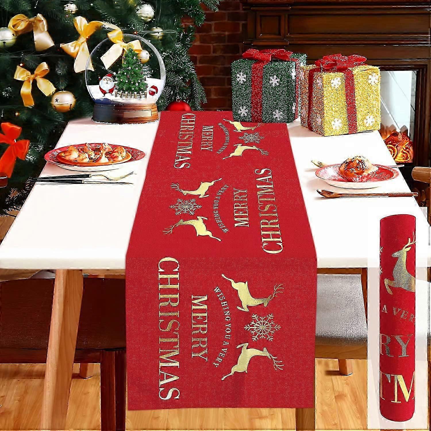 Christmas table runner, Red tablecloth and linen Christmas decorative table runner, Christmas dinner tablecloth runners for Christmas table decoration