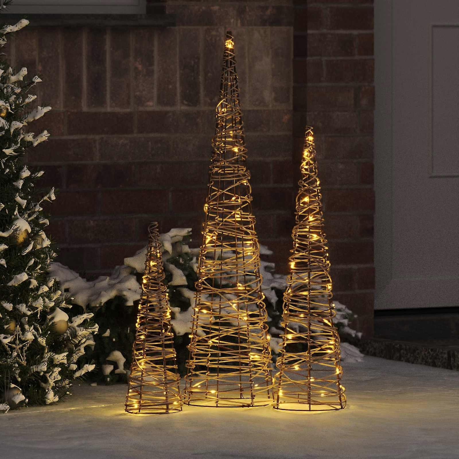 Weihnachtsbaum 3 pcs Warmweiß 20 x 20 x 80 cm Rattan