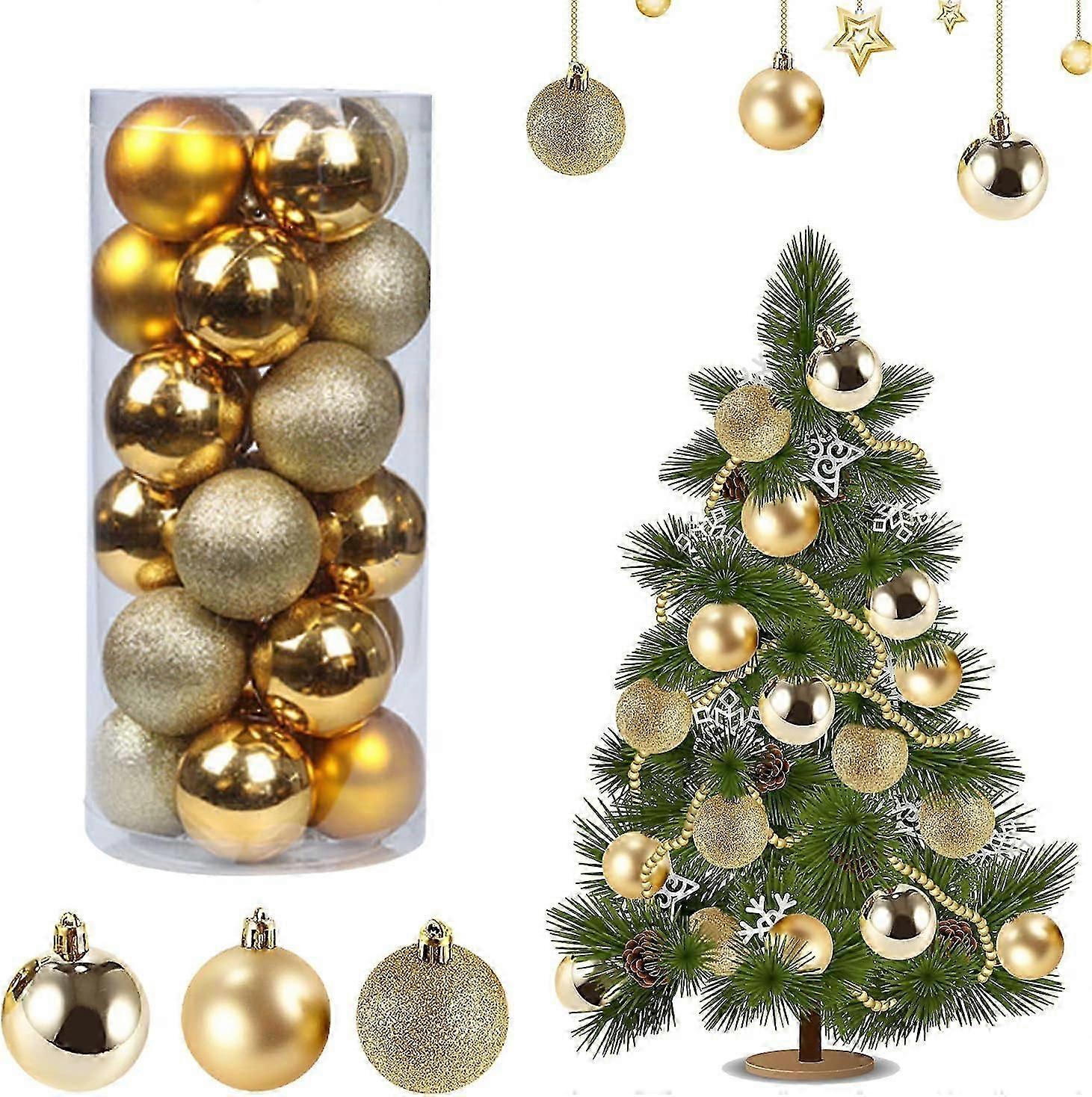 Christmas tree baubles, 24 Christmas baubles, Christmas tree baubles, shatterproof plastic Christmas baubles (gold)