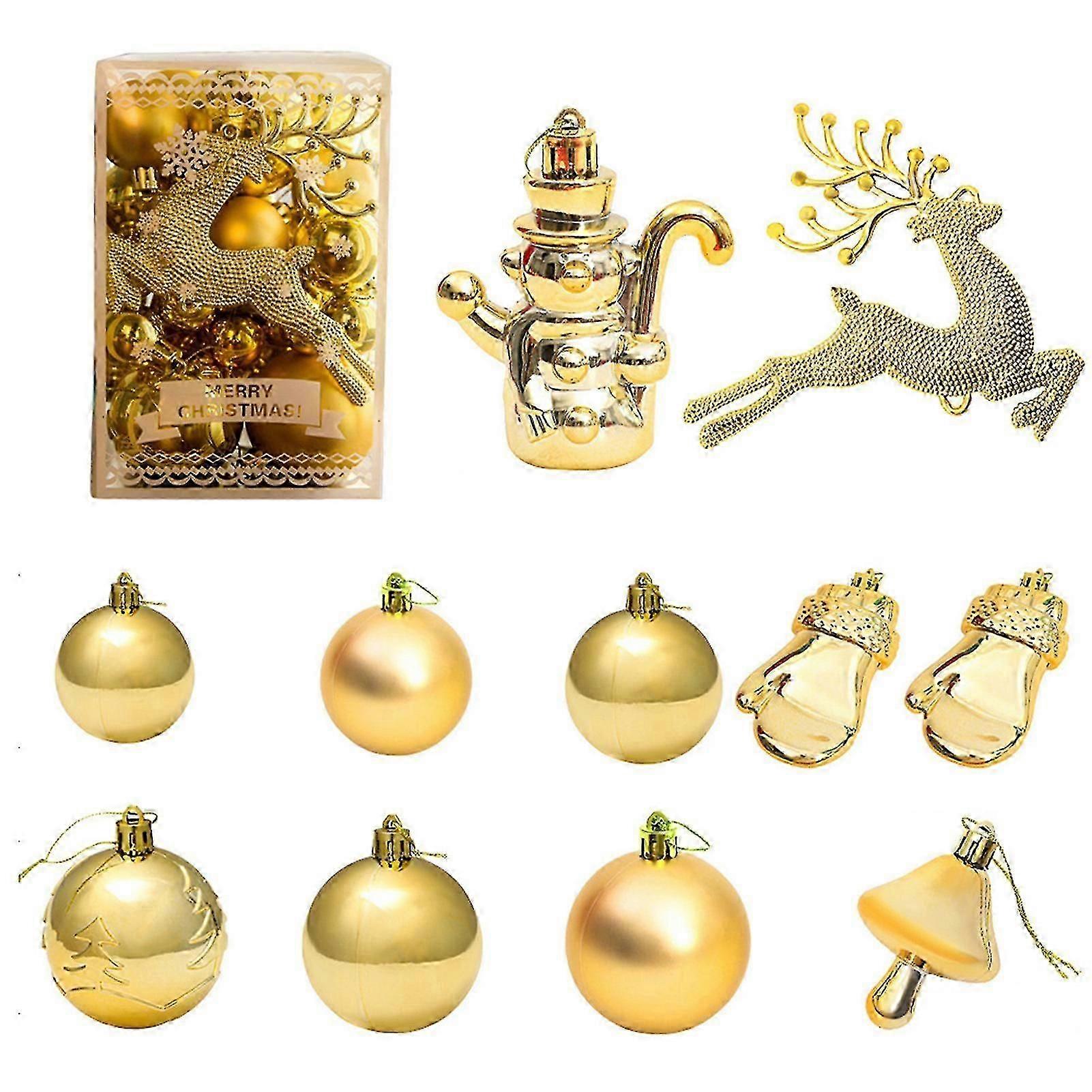 Christmas Tree Baubles Set 30 Pcs Christmas Tree Bulbs Ornaments Christmas Golden Ornaments Reindeer Snowman Mushroom