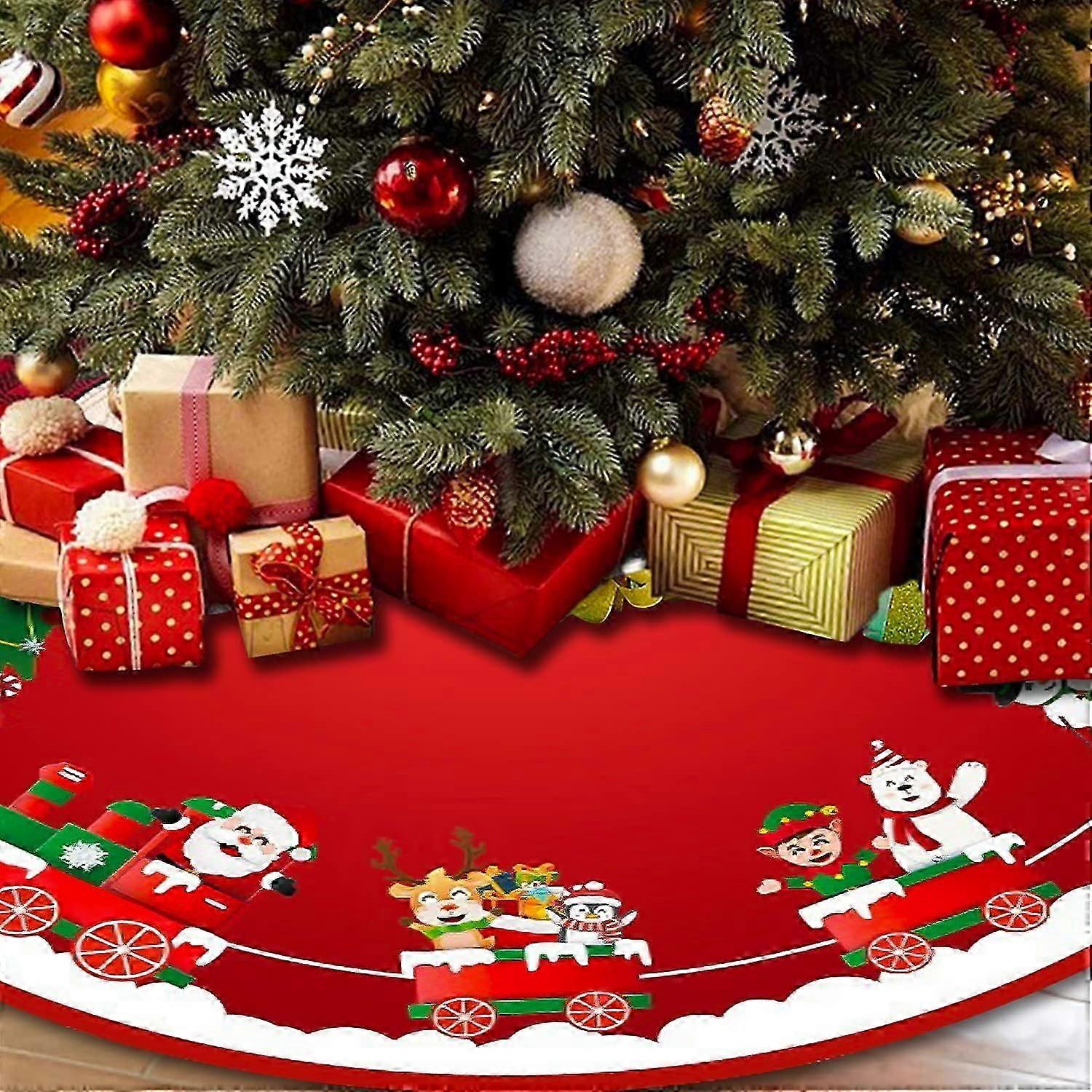 Christmas tree blanket red 90 cm Christmas tree blanket round with Christmas tree decoration ribbon, Christmas tree stand covers Christmas decorations
