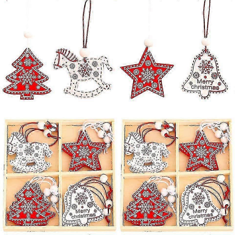 Christmas Tree Decorations 24 Pieces Wooden Christmas Pendants Christmas Decoration Wooden Pendants Christmas Tree Wooden Christmas Tree Decorations-M