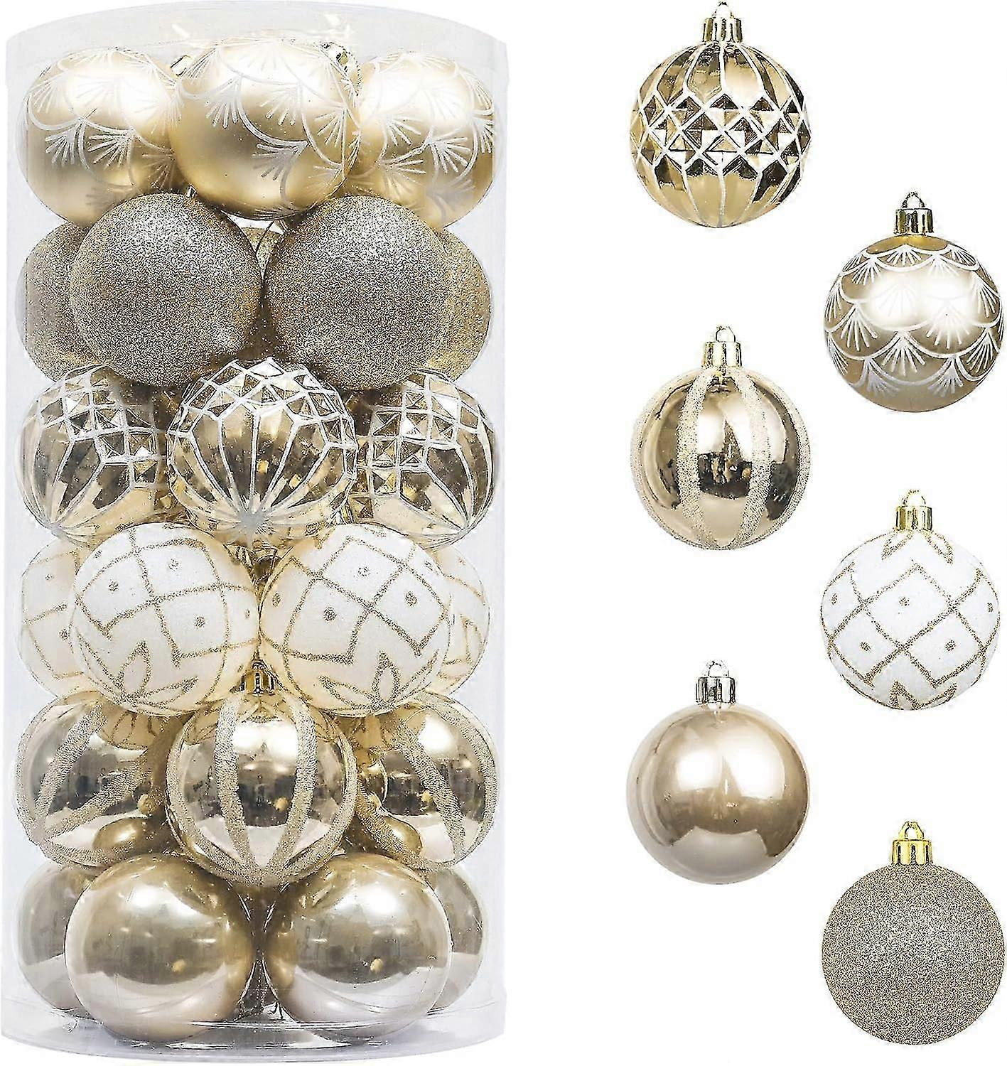 Christmas Tree Decorations Christmas Baubles White Gold 30pcs 6cm Shatterproof Baubles for Christmas Tree Balls Ornaments for Xmas Decoration