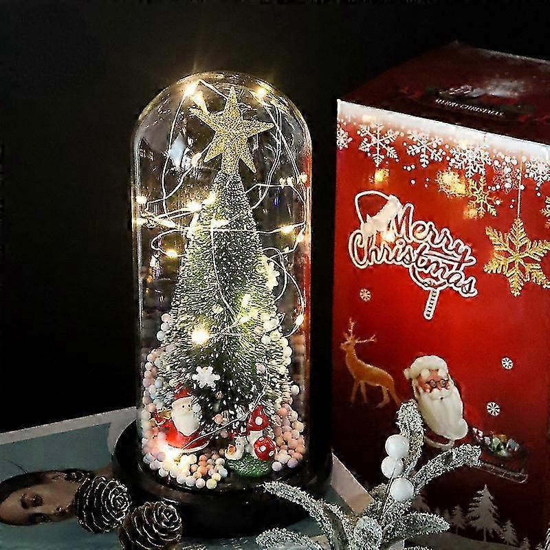Christmas Tree Glass Cover with Colorful LED Light, Mini Christmas Tree in Glass Dome, Creative Christmas Decorations, Christmas Gifts