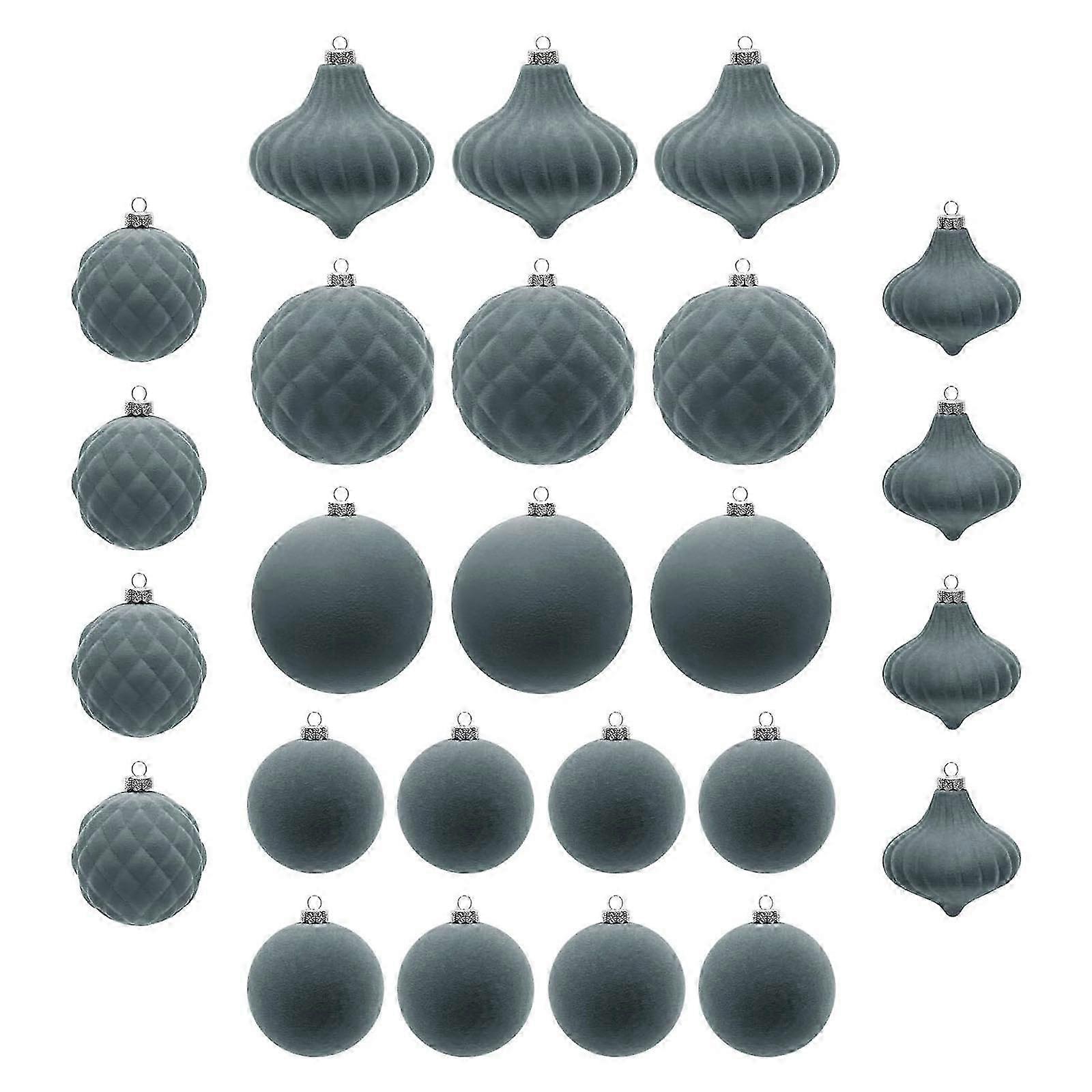 christmas tree Gray Velvet Christmas Balls 25pcs Flocked Christmas Tree Ornaments Assortment For Xmas Tree Holiday Decor