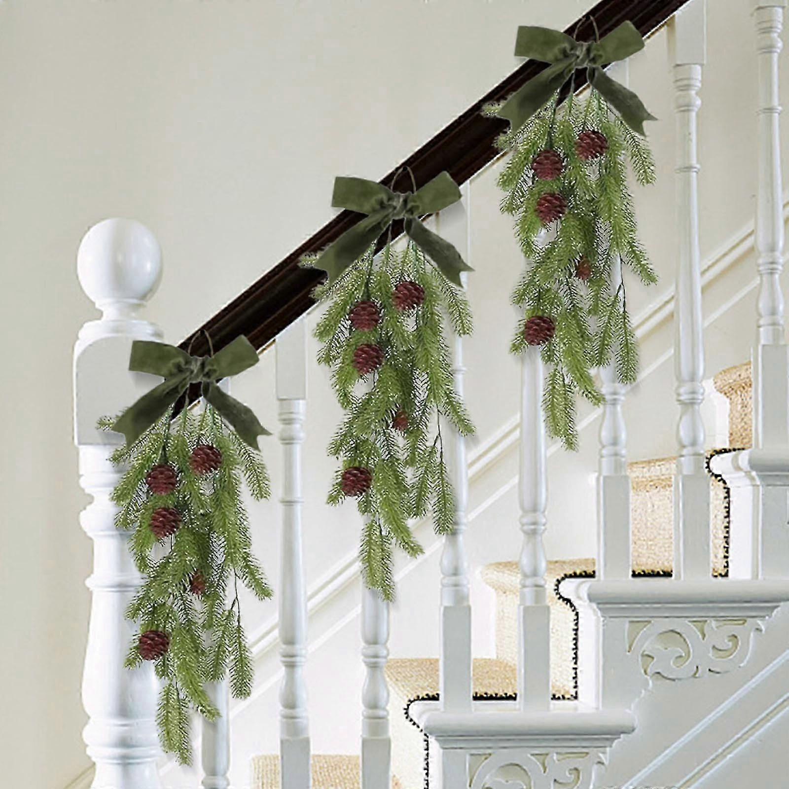 christmas tree Green Christmas Teardrop Swags Christmas Teardrop Swag Garlands Winter Rustic Needles Swag With Cones Velvet Bow Artificial Christmas H
