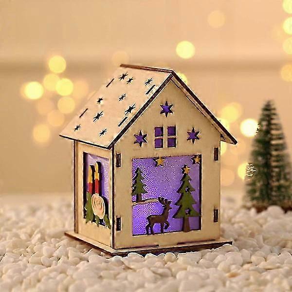 Christmas Tree Ornaments Christmas Glowing Wooden House Christmas Tree Decoration