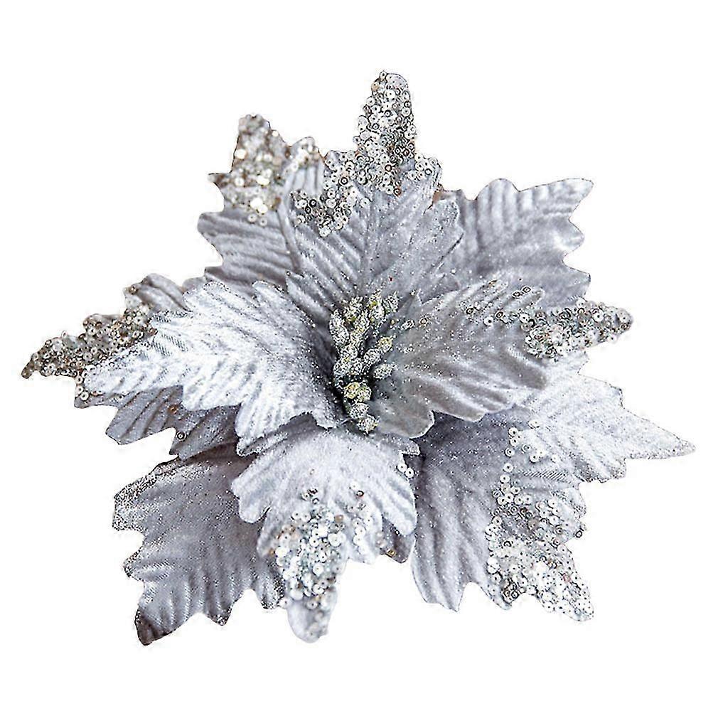 Christmas Tree Ornaments Multicolor Artificial Christmas Flowers for Christmas N Silver