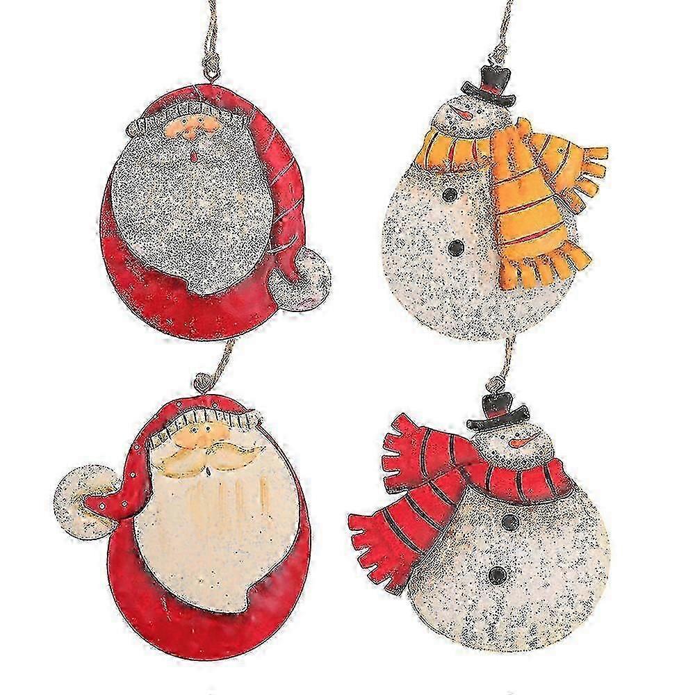 Christmas Tree Ornaments Set Of 4, Santa Snowman Angel Tin Christmas Decorations, Hanging Pendants Christmas Decor