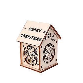 Christmas Tree Pendant Wooden Lighted Cabin House for Xmas New Year Decoration Size S (Bell)