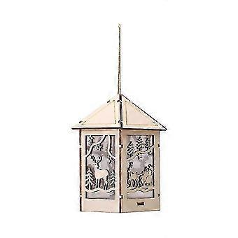 Christmas Tree Pendant Wooden Lighted Cabin House for Xmas New Year Decoration (XMW008)
